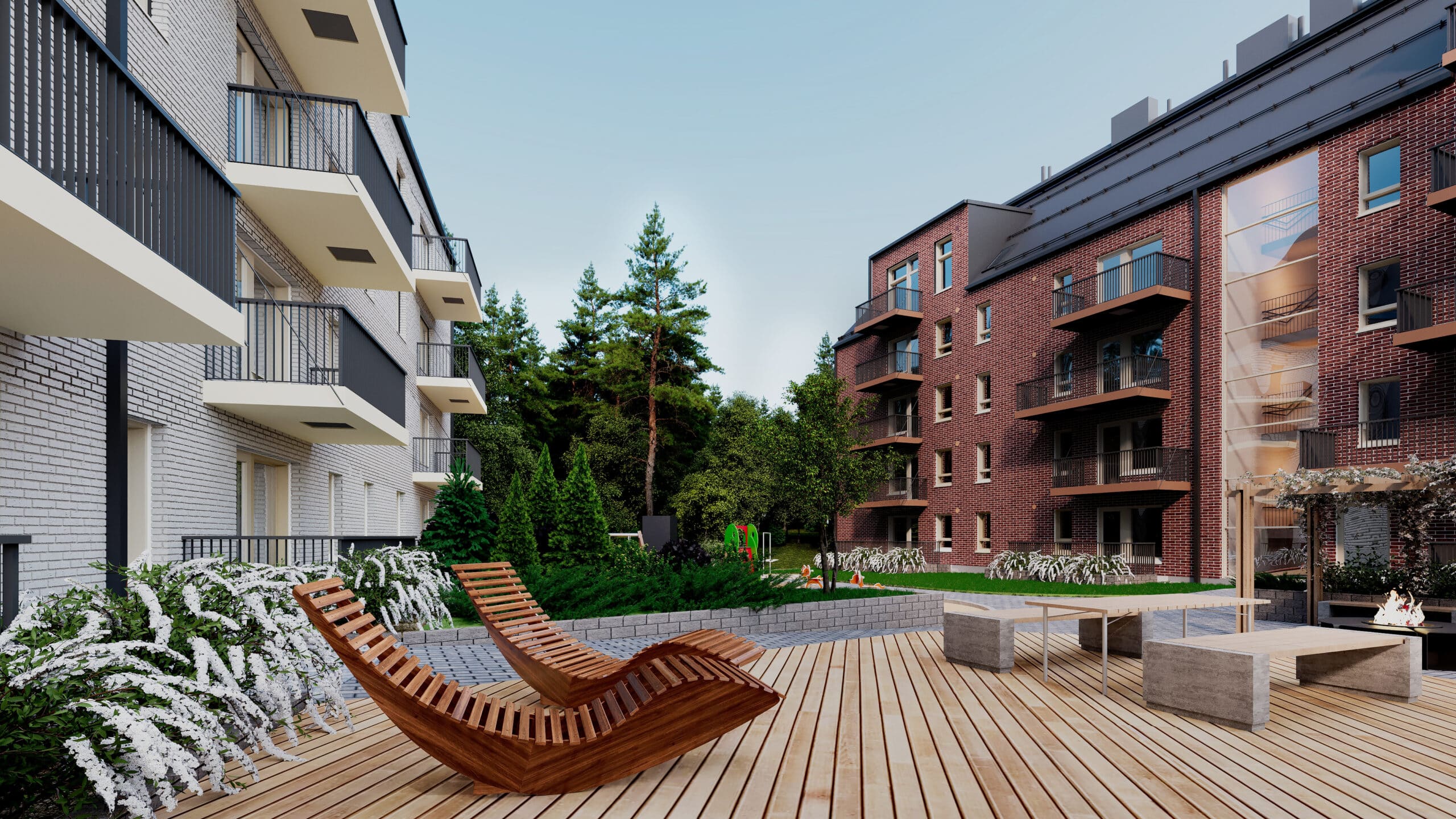 Vehreä ja suojaisa piha-alue tarjoaa monipuoliset puitteet ulkona viihtymiseen. Pihalta löytyy oleskelualueita, leikkipaikka lapsille sekä pergolalla varustettu grillipaikka, joka kutsuu asukkaat yhteisiin kesähetkiin.