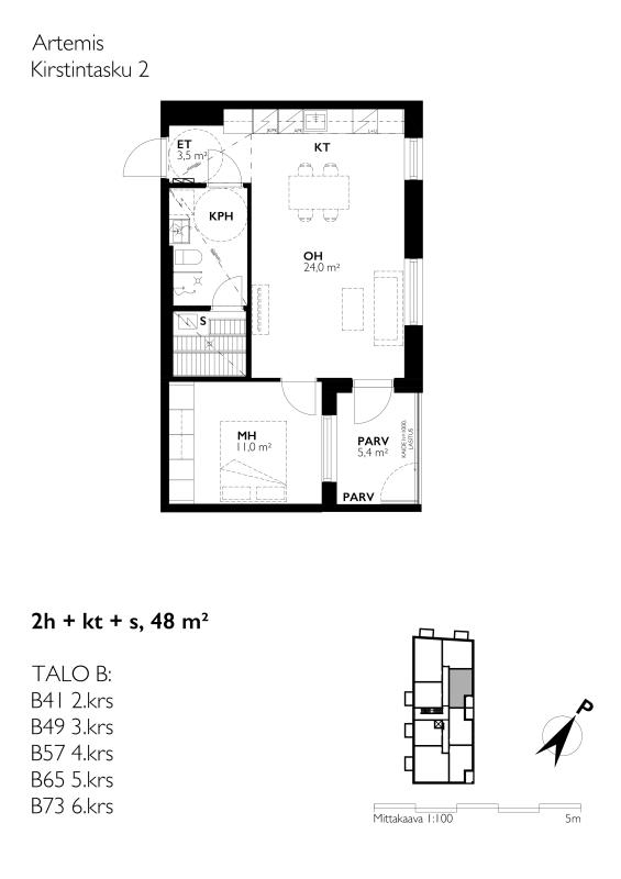 | B 73 | 6. | 2h+kt+s | 48 m² | 869,94 €/kk |