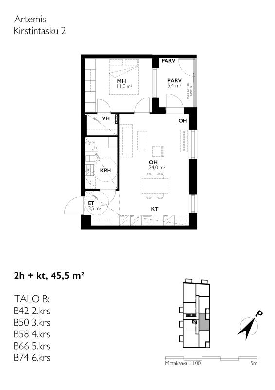 | B 66 | 5. | 2h+kt | 45,5 m² | 787,32 €/kk |